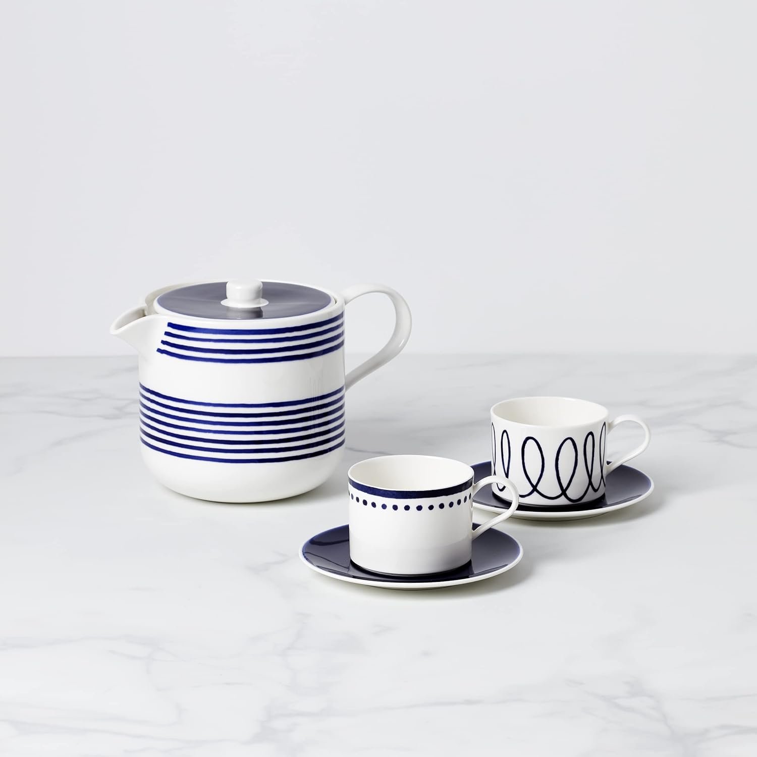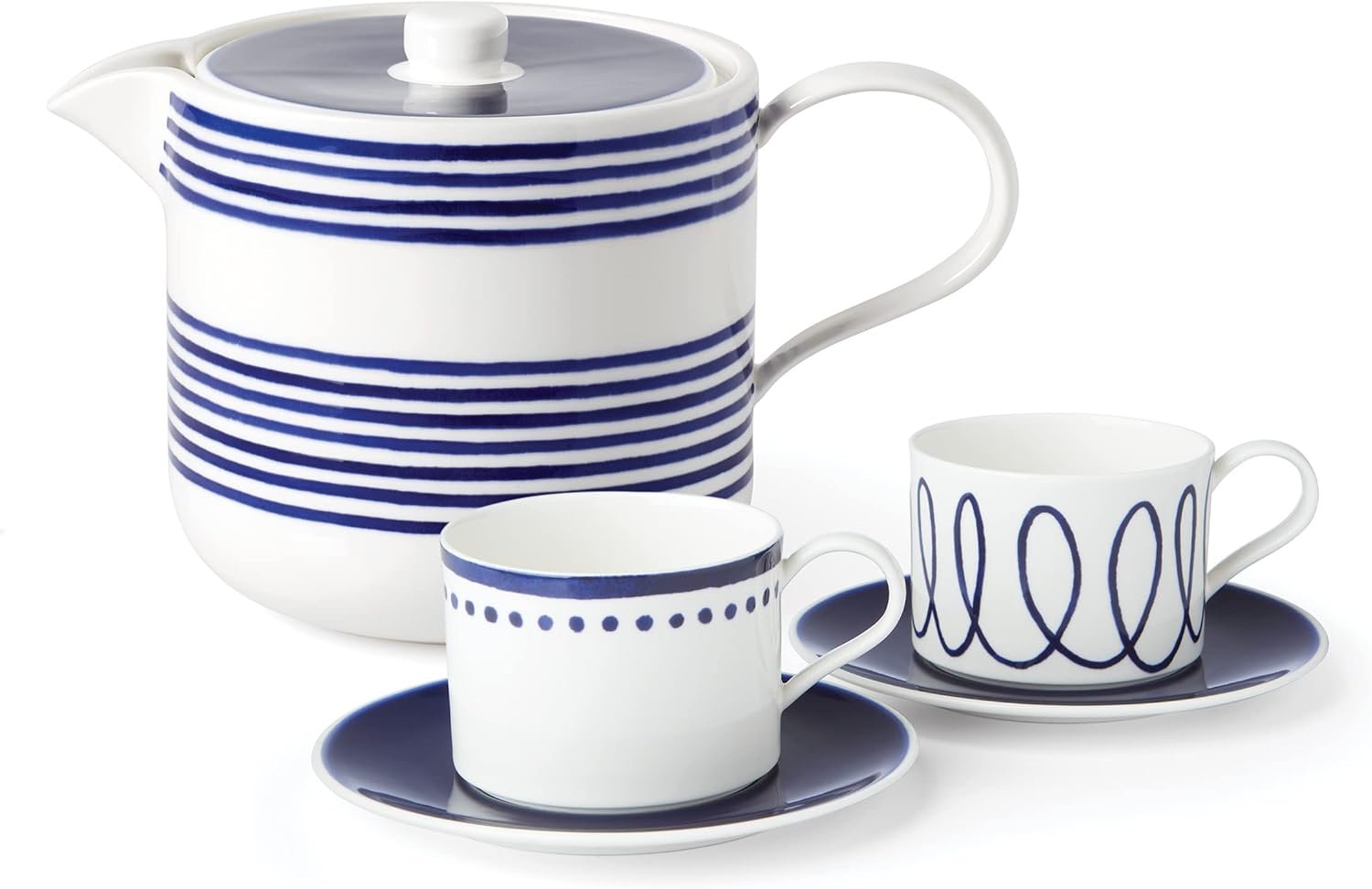 Tea Pot Sets for Adults, Bone China Tea Set Blue and White, Tea Cups Sets of 6, Tea Party Set for Women, Vintage Fine Coffee Tea Set English Porcelain Luxury Tea Sets with Teapot for Gift