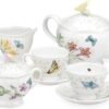 Bone China Tea Cup Sets,15-Pieces Tea Cup and Saucer Set Service For 4 Whit 28 Ounces Teapot,Sugar Bowl,Creamer Pitcher and Spoons, Tea Gifts Sets For Women Patry.