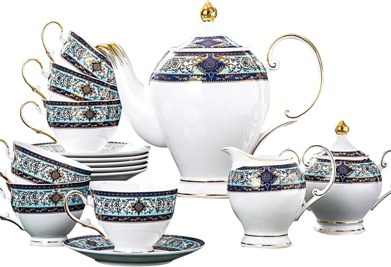 【Application Scenario】The unique bone China tea set with teapot is not only the perfect companion for your life, but also the best gift for friends and relatives, coffee or tea lovers. tea sets for adults are suitable for senior tea parties, weddings and parties.