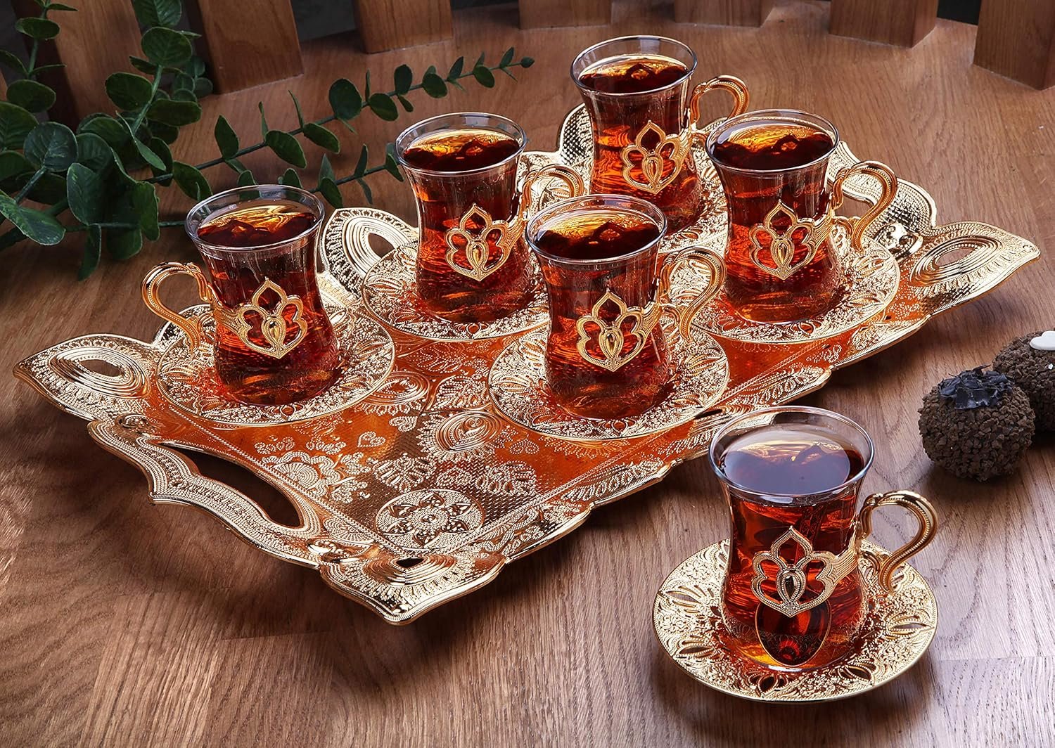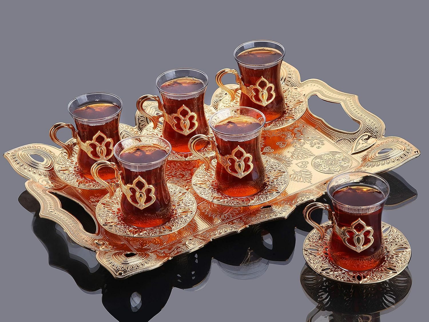 Cleaning of the Glass Parts: Glass parts are separable and machine washable. Cleaning of the Gold Parts: It should be cleaned using a damp cloth and left dry with a dry cloth.